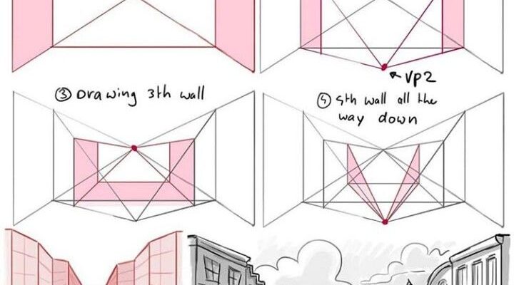 Step 2 – Add the Second Vanishing Point (VP2) Place VP2 far to the right (or left) on the same horizon line. Draw the opposite building walls converging toward VP2. The wider the angle between VP1 and VP2, the sharper your downhill plunge will feel.