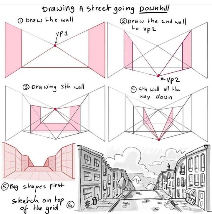 How to Draw a Convincing Downhill City Street in Two-Point Perspective – Step-by-Step Tutorial