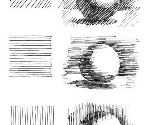 • Cross-hatching: Combine two directions (e.g., diagonal + vertical) for richer darks without losing clarity.