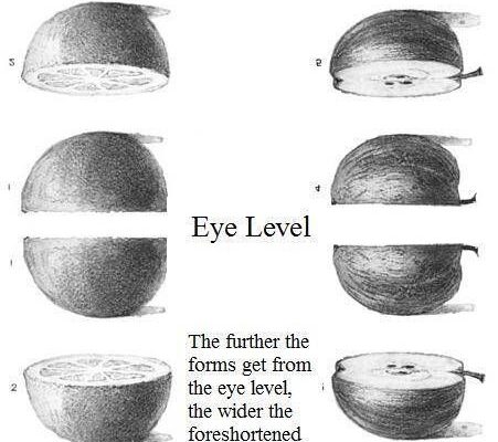 - Key Insight: “The further the forms get from the eye level, the wider the foreshortened circle gets…”
