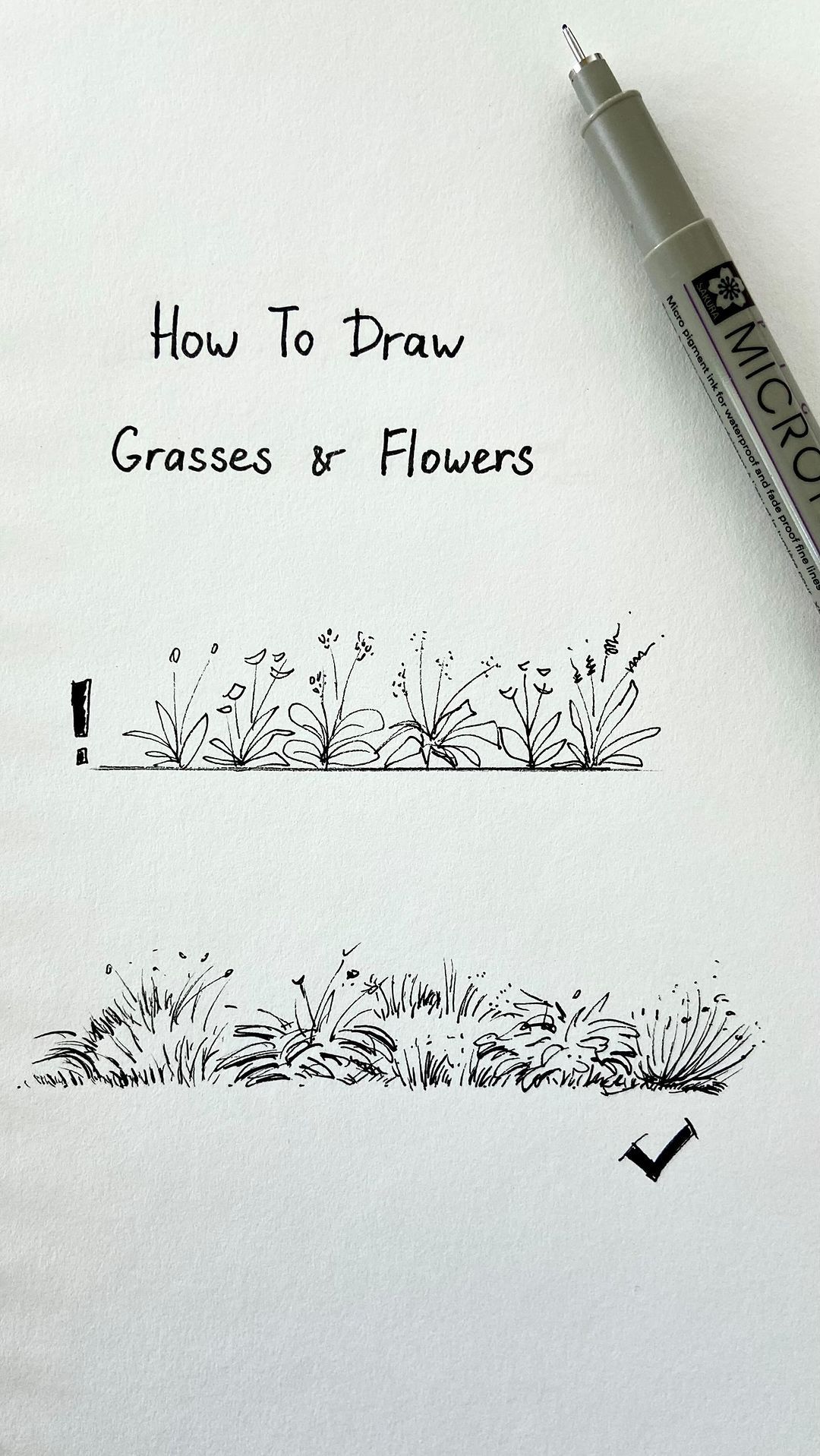 How to Draw Realistic Grasses and Wildflowers with Ink