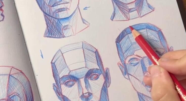 This detailed tutorial guides you through shading a face portrait starting from the kind of blue/red construction lines seen in the image (blue for major planes, red for refinements or light direction). It’s perfect for beginners to intermediate artists working in pencil (graphite or colored) on paper. The goal is to achieve realistic volume, form, and lighting without guessing—relying instead on structured planes.