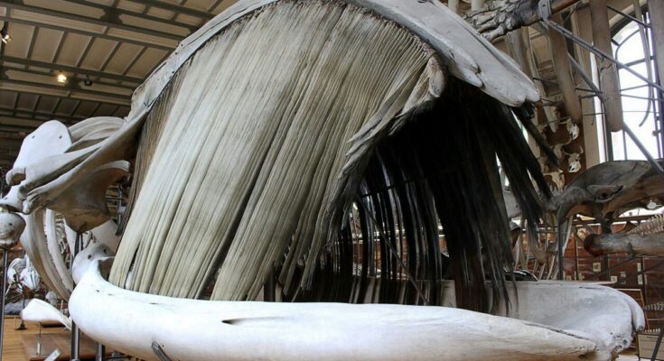 The Majestic Baleen of the Blue Whale: A Close-Up View of Nature’s Greatest Filter-Feeding Mechanism in a Museum Display