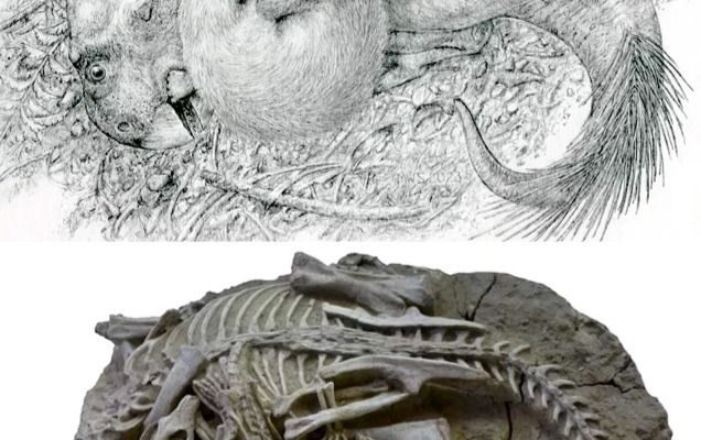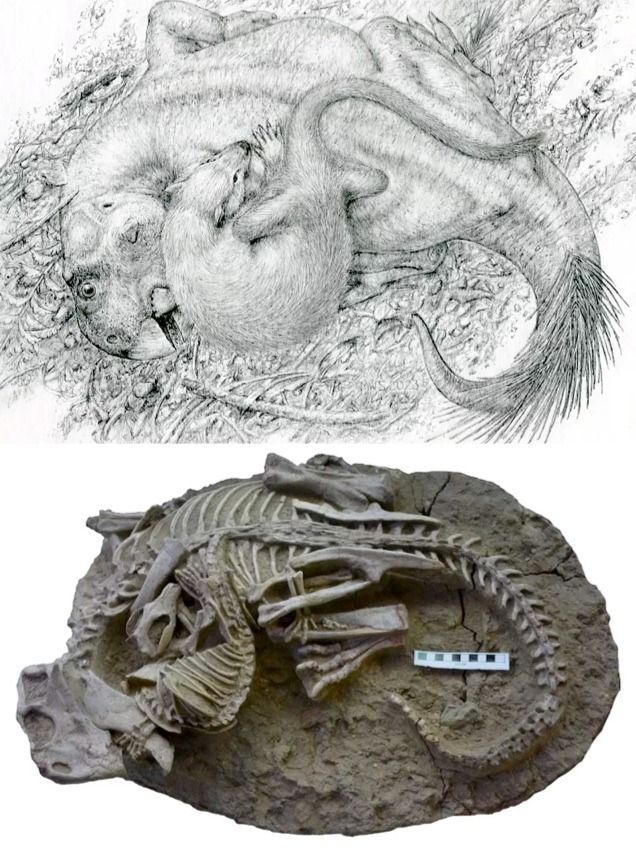 This fossil of a mammal biting a dinosaur captures a death battle’s final moments