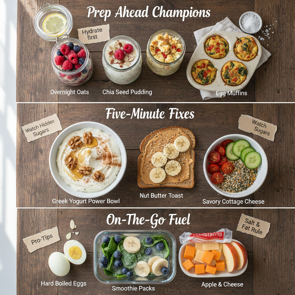 - Prep ahead: Make overnight oats, chia pudding, or hard-boiled eggs on weekends.