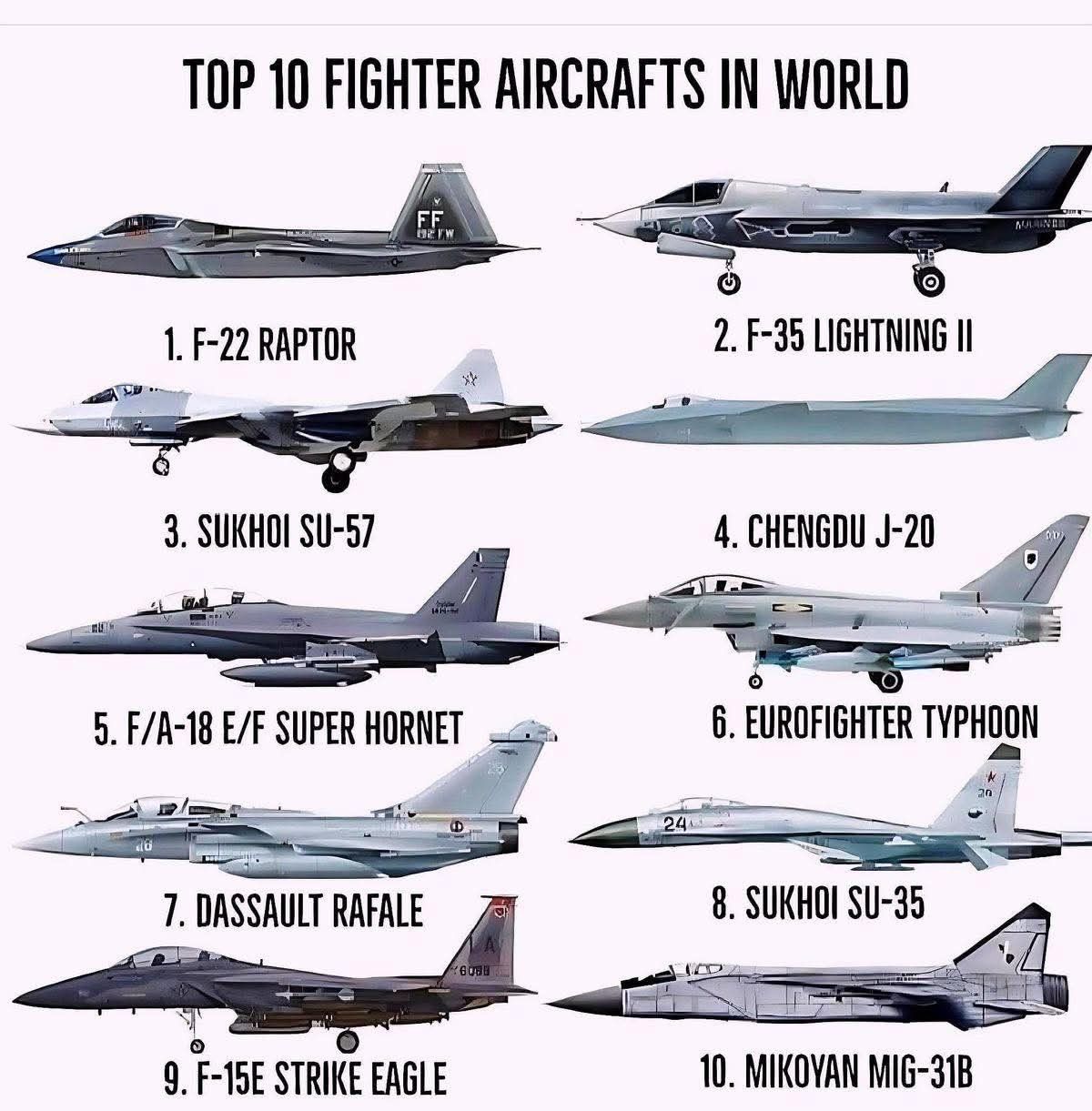The image’s order leans toward air superiority + stealth, with U.S. platforms at the top due to superior low-observability and integration.
