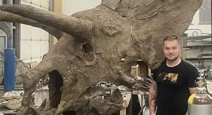 Like the Patagotitan femur, Archelon mount, and Arthropleura model we’ve covered, this photo turns dry stats into visceral wonder. Standing next to a Triceratops skull makes you realize these weren’t just “big dinosaurs”—they were walking tanks with heads bigger than most people are tall. In prep labs and museums, these moments remind us how fieldwork uncovers giants that reshape our view of prehistoric life.