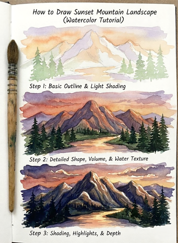 This guide covers the fundamentals: how mountains actually form (which affects how you draw them), the three-layer system for creating depth, atmospheric perspective techniques, and step-by-step methods for different mountain styles. We’ll also address the common mistakes that keep landscapes looking two-dimensional.