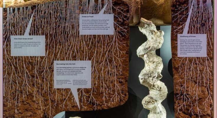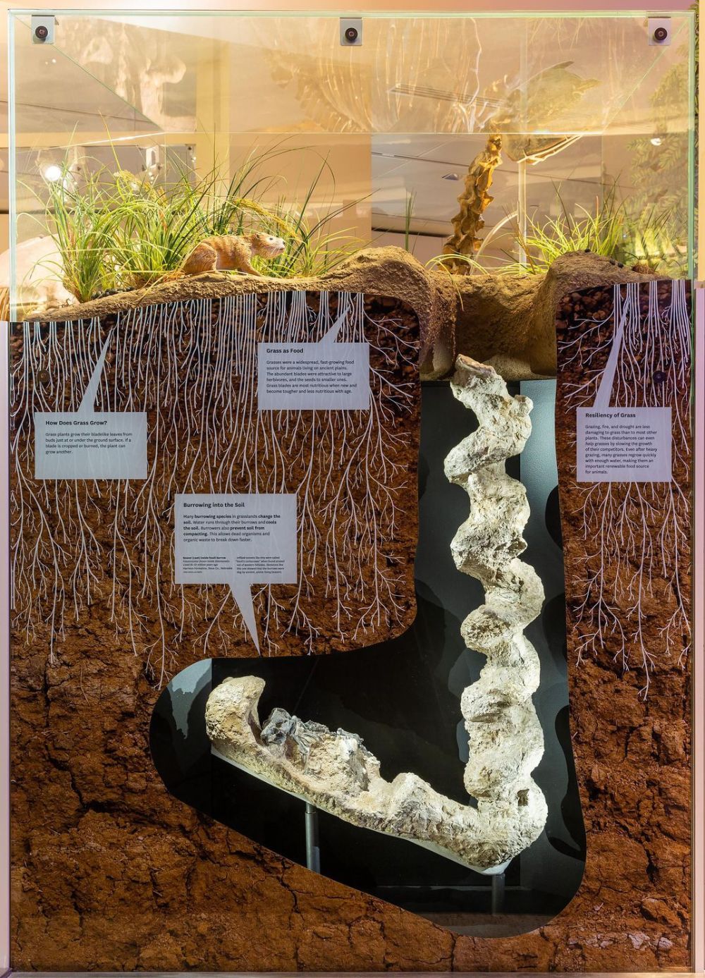 The Daimonelix burrow with a skeleton of its maker, the extinct beaver called Palaeocastor, is on view in the new fossil hall “Deep Time” at the Smithsonian’s National Museum of Natural History in Washington, D.C.