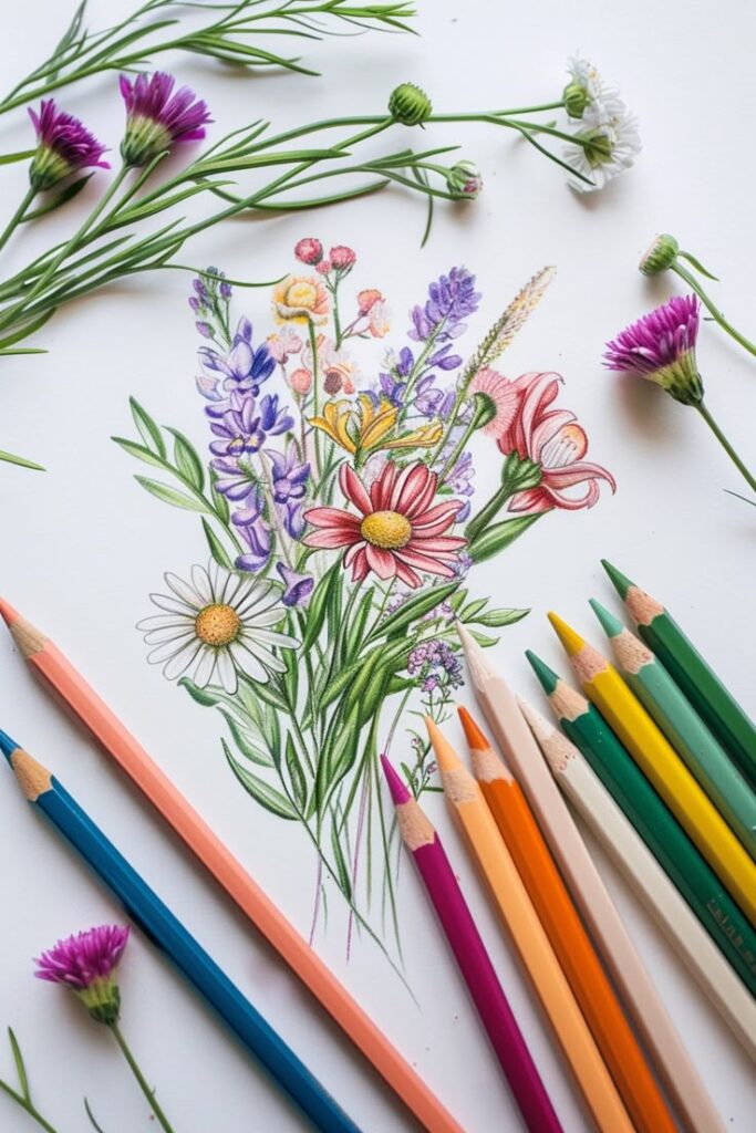 When drawing flowers and plants, attention to detail is essential. Artists should start by observing the structure of the flower, including petals, leaves, and stems.