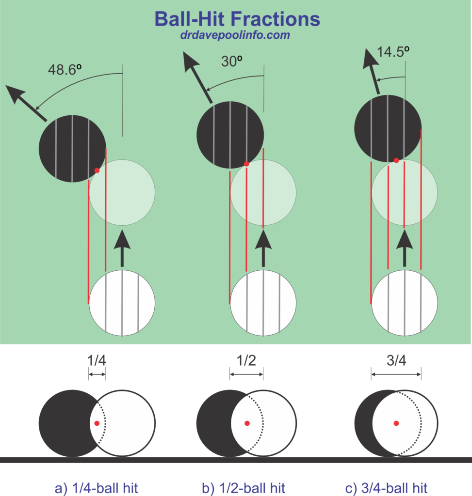 Also, here are useful illustrations from “Aim, Align, Sight – Part I: Introduction and Ghost Ball Systems” (BD, June, 2011) and “HAPS – Part I: Fractional-Ball Aiming” (November, 2014) defining the standard ball-hit fractions: