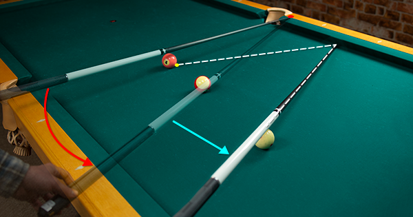 Now that we have a line connecting those two points, the next and final move is to make a parallel shift to the cue ball. This gives us the point on the rail we must hit with a center ball and medium speed to make the 1 ball.