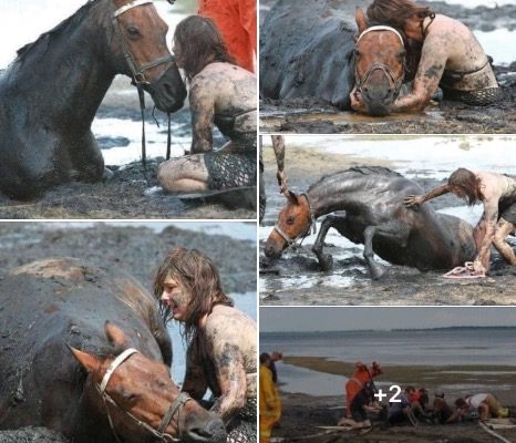 The rising tide only worsened the situation, threatening to engulf the trapped horse completely. With the mud acting like quicksand, Astro’s movements became more frantic, and every slight movement caused him to sink deeper. For three hours, Nicole stood by her beloved horse, doing everything in her power to keep him calm and hopeful.