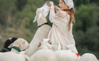 Serene Pastoral Harmony: A Young Shepherdess Nurturing Her Flock in Lush Countryside Meadows In this captivating photograph, captured amidst the rolling emerald hills of a verdant countryside landscape, a young …
